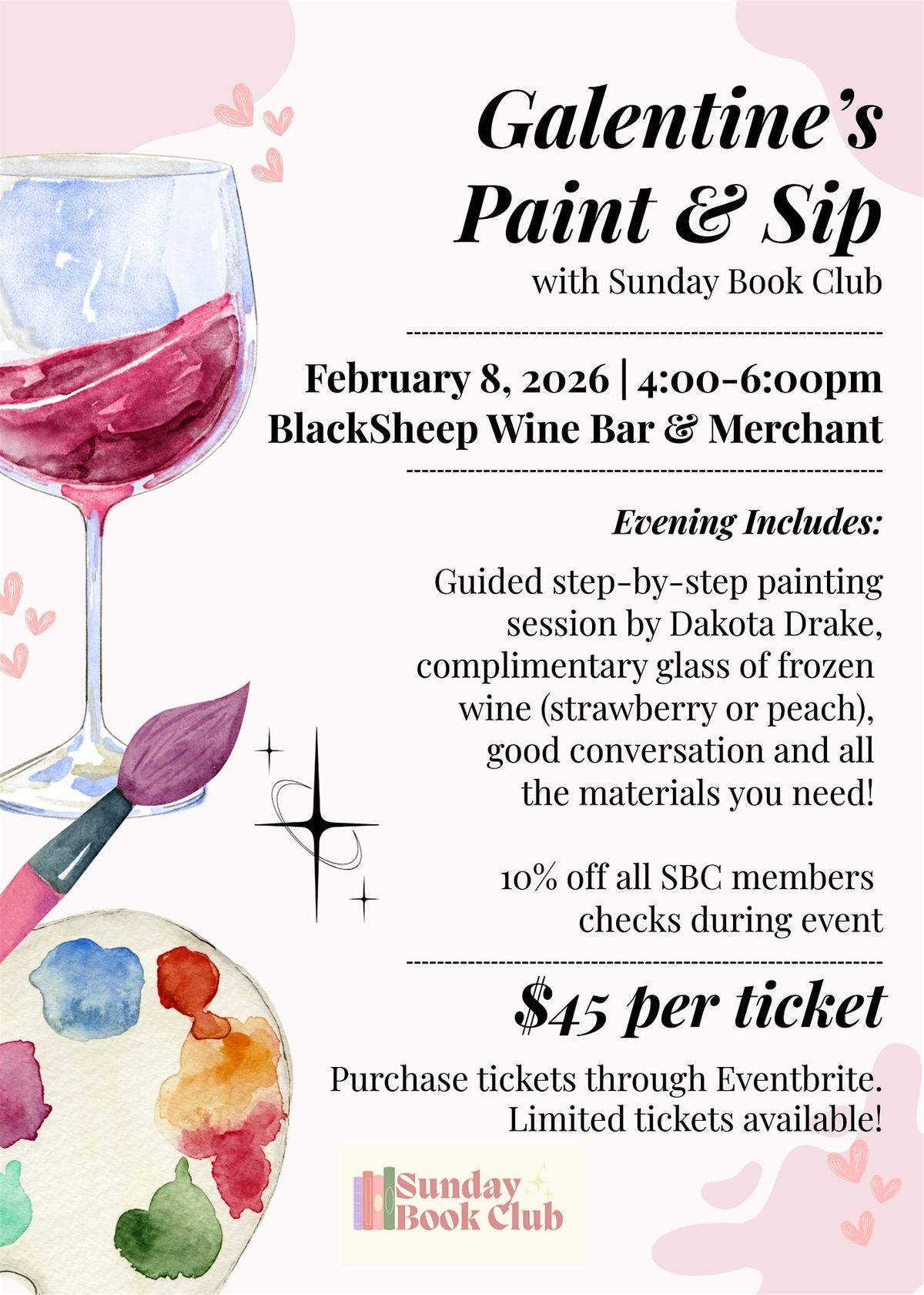 Join us Sunday, February 8 for a guided paint and sip led by Dakota Drake! Event begins at 4pm!🎨