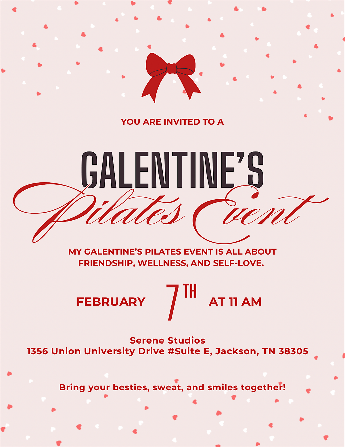 Whether you're a Pilates pro or a total newbie, this class is all about laughing, stretching, and empowering each other. Don’t miss out on this perfect way to celebrate friendship and wellness together.