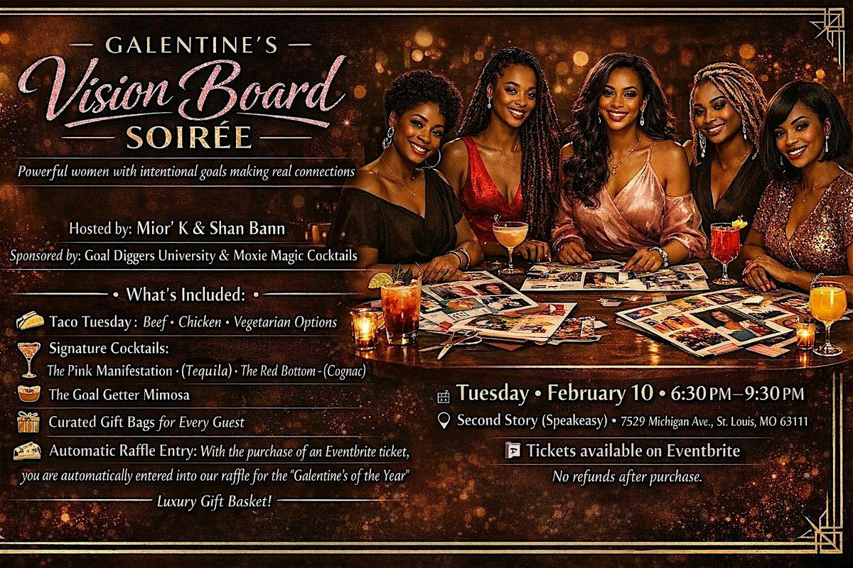 Step into a luxe speakeasy vibe for a night of intention, sisterhood, and serious goal-setting. Galentine’s Vision Board Soirée is an elevated vision board and networking experience designed for powerful women who are ready to get clear, get focused, and make real connections with other goal-getters.
