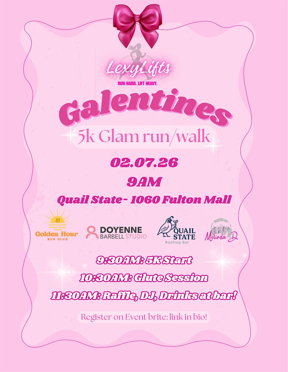 🎀 After the run/walk, stick around for a glute session to tone those muscles and feel the burn. It's the perfect way to celebrate friendship and fitness with your gals. Don't miss out on this fabulous event!