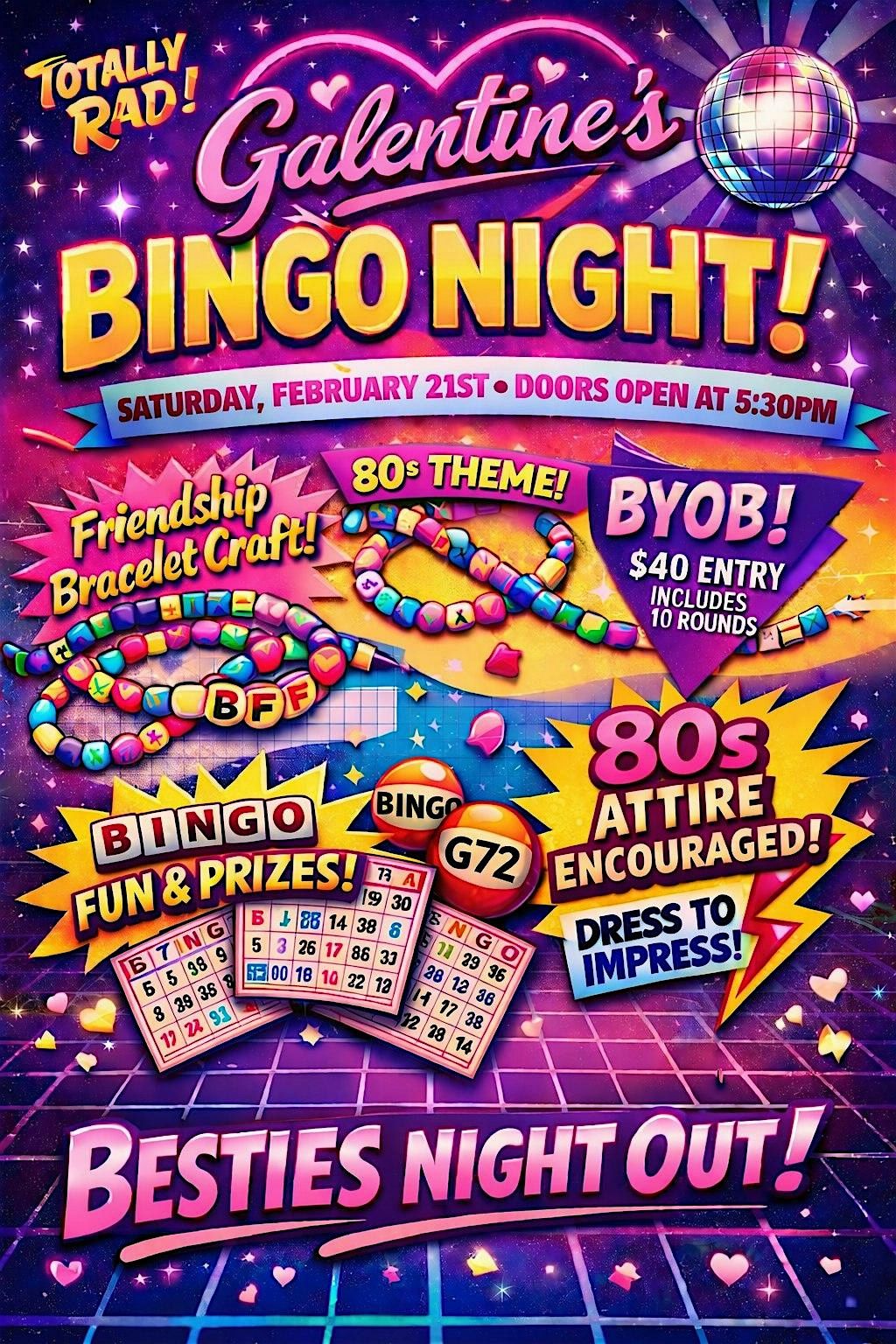 Galentine's 80's Bingo Night!Feb 21, 2026, 5:30 PM – 9:30 PM
