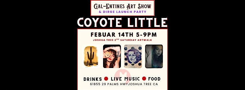 Be our weird little Valentine and see why everyone’s been waiting for Dirge's return this Valentine's Day which falls on Joshua Tree's Second Saturday Art Walk at Coyote Little inside the Art Queen Complex!