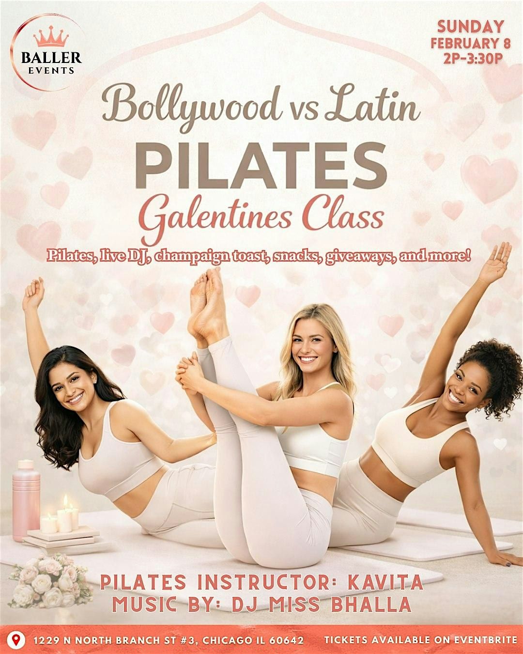 Come join us on February 8th for our Galentines Bolly x Latin Pilates DJ Class featuring DJ Miss Bhalla and Pilates instructor Kavita