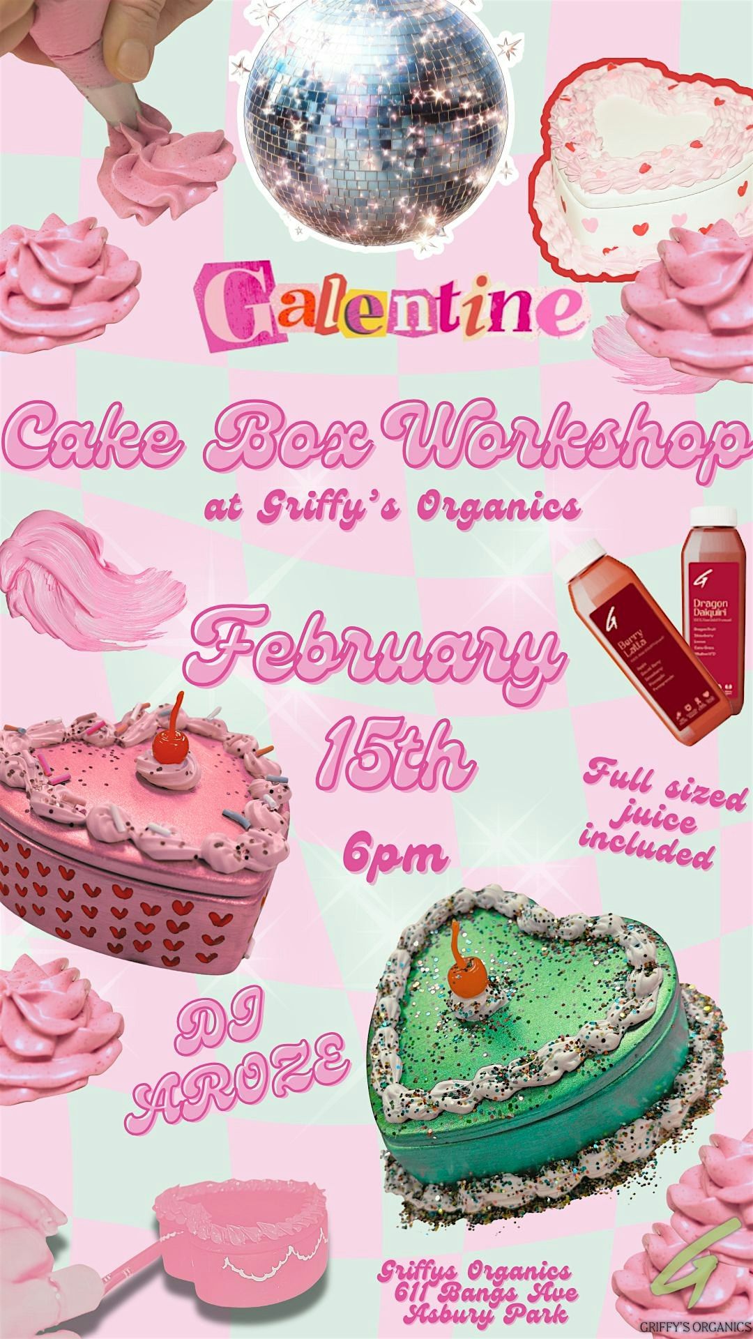 Celebrate Galentine’s Day with The Craft Club at Grift’s Organics for a fun, creative, and feel-good night out. In this hands-on workshop, you’ll design and decorate your own cake-shaped trinket box, turning it into a hyper-realistic keepsake that’s equal parts art and decor! You’ll paint and detail your box using specialty paints and permanent frosting, then customize it with adorable toppings like cherries, bows, sprinkles, and more to make it uniquely yours. No experience needed: our instructor will guide you step by step, so you can relax, create, and enjoy the process.