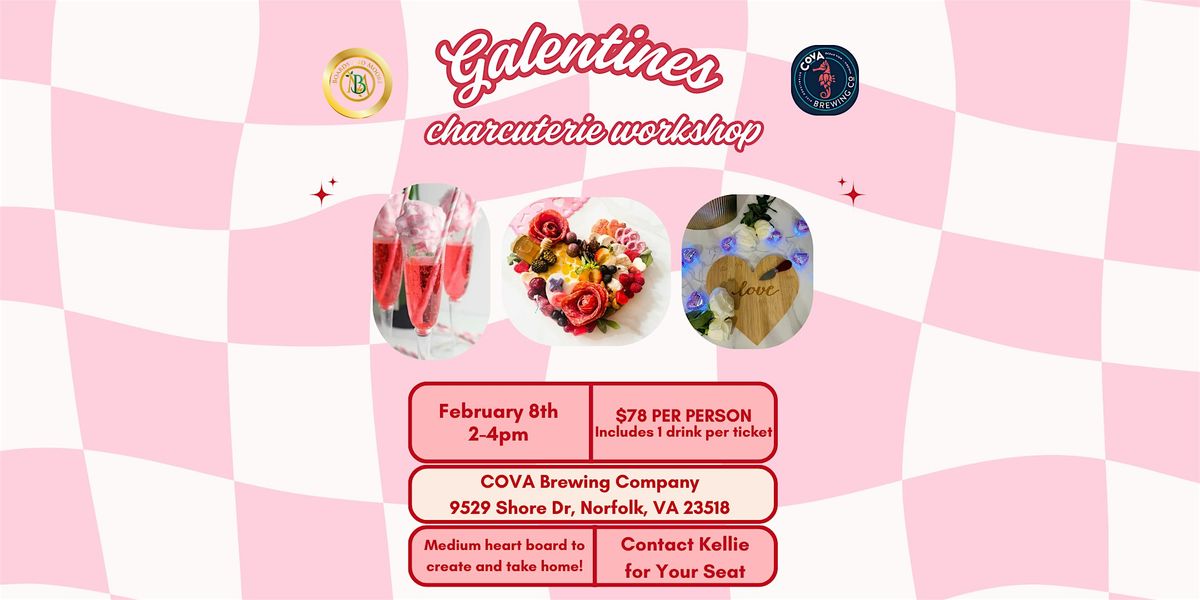 Come join us at COVA Brewing Company for a festive and fun Galentines Charcuterie Workshop with Boards and Moore! Learn how to create the perfect heart shaped charcuterie board to impress your guests or have a quiet night in. Kellie, owner of Boards and Moore, will guide you through selecting the best meats, cheeses, and accompaniments. Get hands-on experience arranging and styling your board for that Instagram-worthy presentation. Whether you're a charcuterie novice or a seasoned pro, this workshop is perfect for anyone looking to up their game this Valentine's Day. Don't miss out on this delicious and educational event!