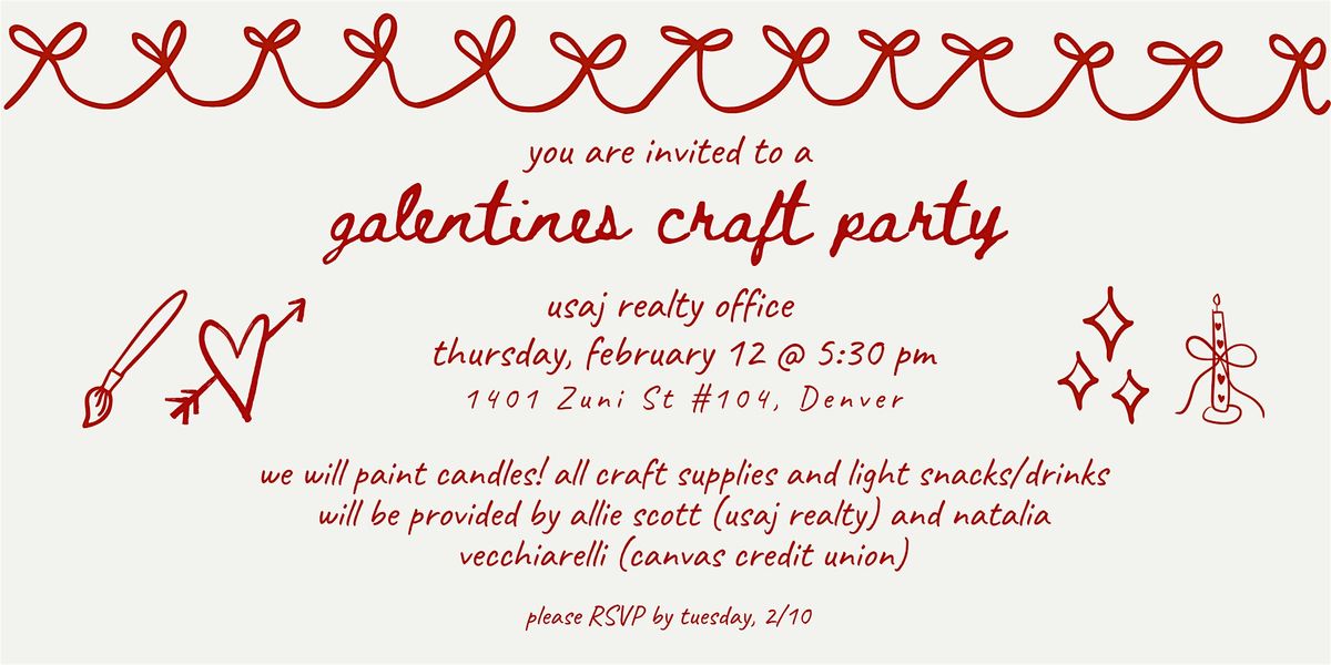 Join us at 5:30 pm on Thursday, 2/12, for a fun (girls only!) night filled with snacks, drinks, and painting candles. All craft supplies & food/drinks provided. Free to attend! Sponsored by Allie Scott, Usaj Realty, and Natalia Vecchiarelli, Canvas Credit Union.