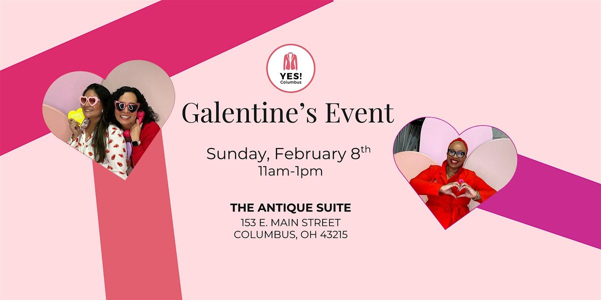 Come join us for our annual Galentine's Event at The Antique Suite by Allure Events! Grab your favorite gals (or guys!) and join us to mingle, enjoy lite brunch + dessert bites, drink up at a mimosa bar, shine with hair tinsel, take photos with your pals, and learn more about how YES! and Dress for Success Columbus support our community. All are welcome!
