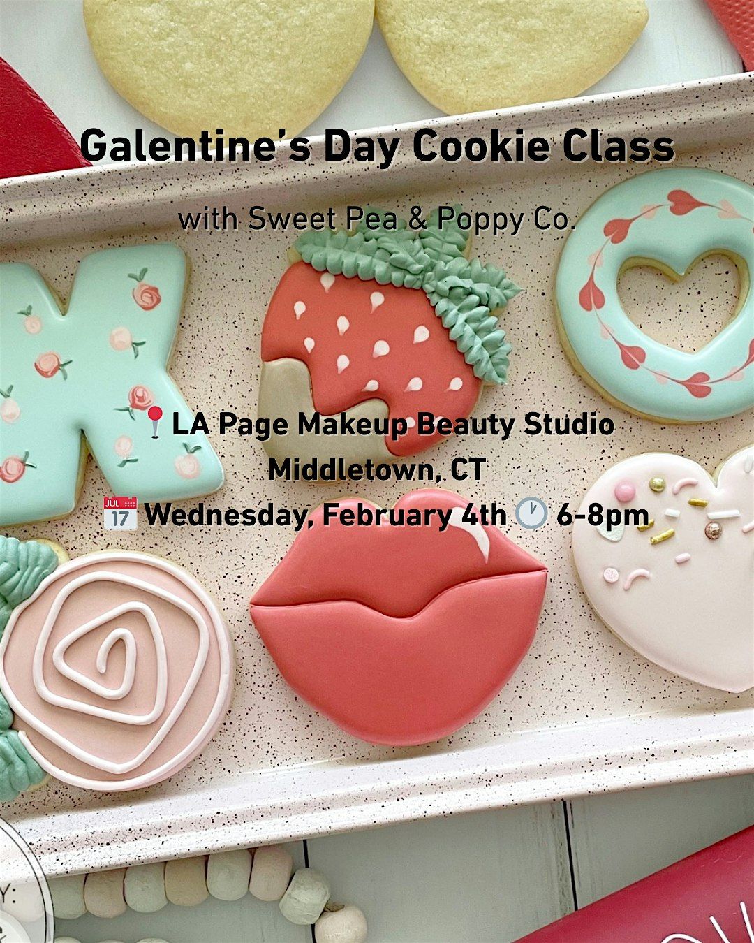 Join us for a fun Galentine's Day Cookie Class, where you'll learn how to make 6 beauty-and-love-inspired cookies by the talented Sweet Pea and Poppy Cookie Co!