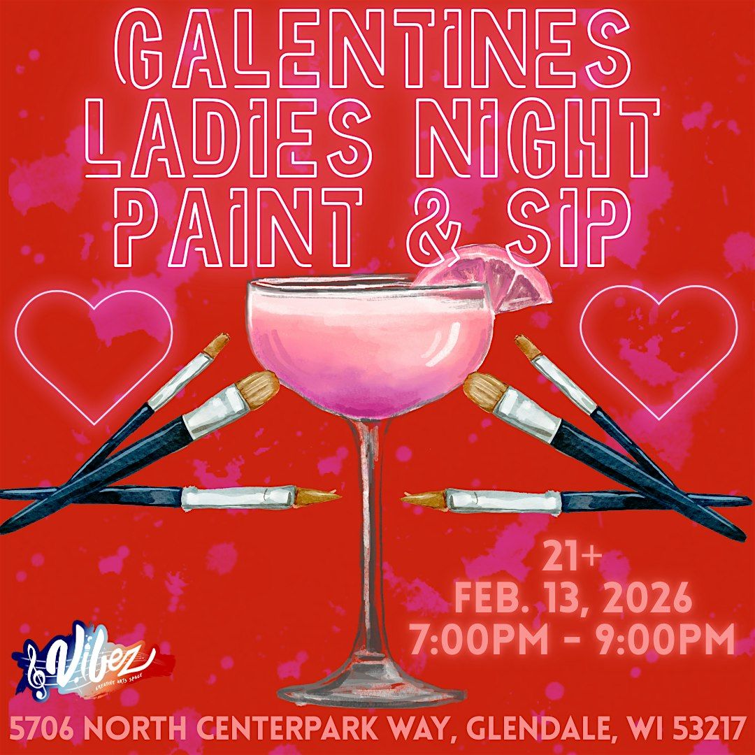 Celebrate Galentines day with great vibez! Join us on February 13th from 6:30-8:30 pm to paint sip and celebrate friendshi! All supplies, a drink, and a pre-sketched canvas are included with tickeys. See you then!