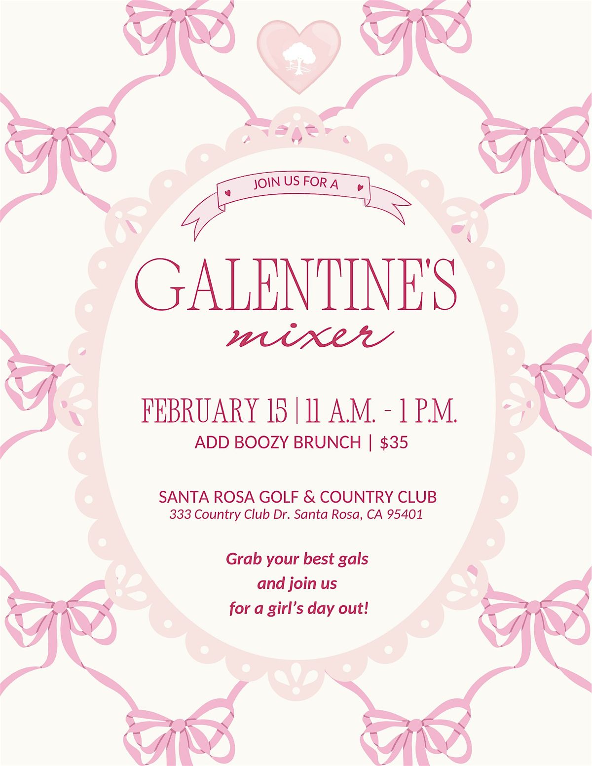 Grab your girls and join us at Santa Rosa Golf & Country Club for a Galentine’s celebration filled with friendship, flavor, and fun. Sip, snack, shop, and celebrate with an optional boozy brunch, plus a lineup of curated local vendors to keep the good vibes going.