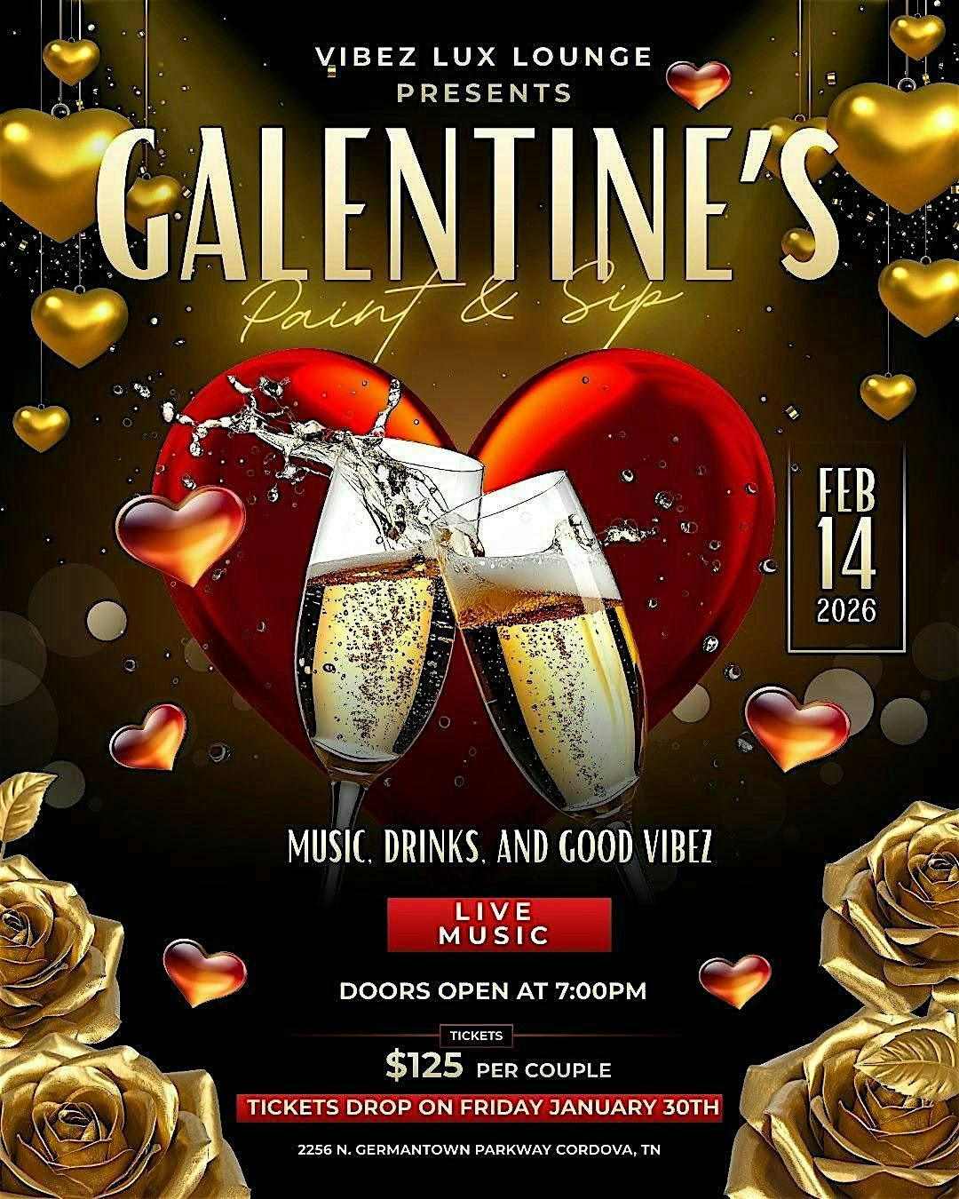 Join us for a one night only special event. Vibez Lux Lounge presents Galentine’s Day: Sip & Paint Edition. Grab your bestie and pull up for a girls night out!