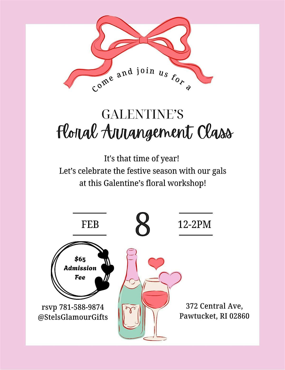 Grab your besties and join us for a fun in-person floral arranging class that's all about celebrating friendship! Get creative, laugh a lot, and leave with your very own stunning bouquet. No experience needed – just bring your fabulous self and a love for flowers. Let’s make this Galentine’s Day bloom with joy!