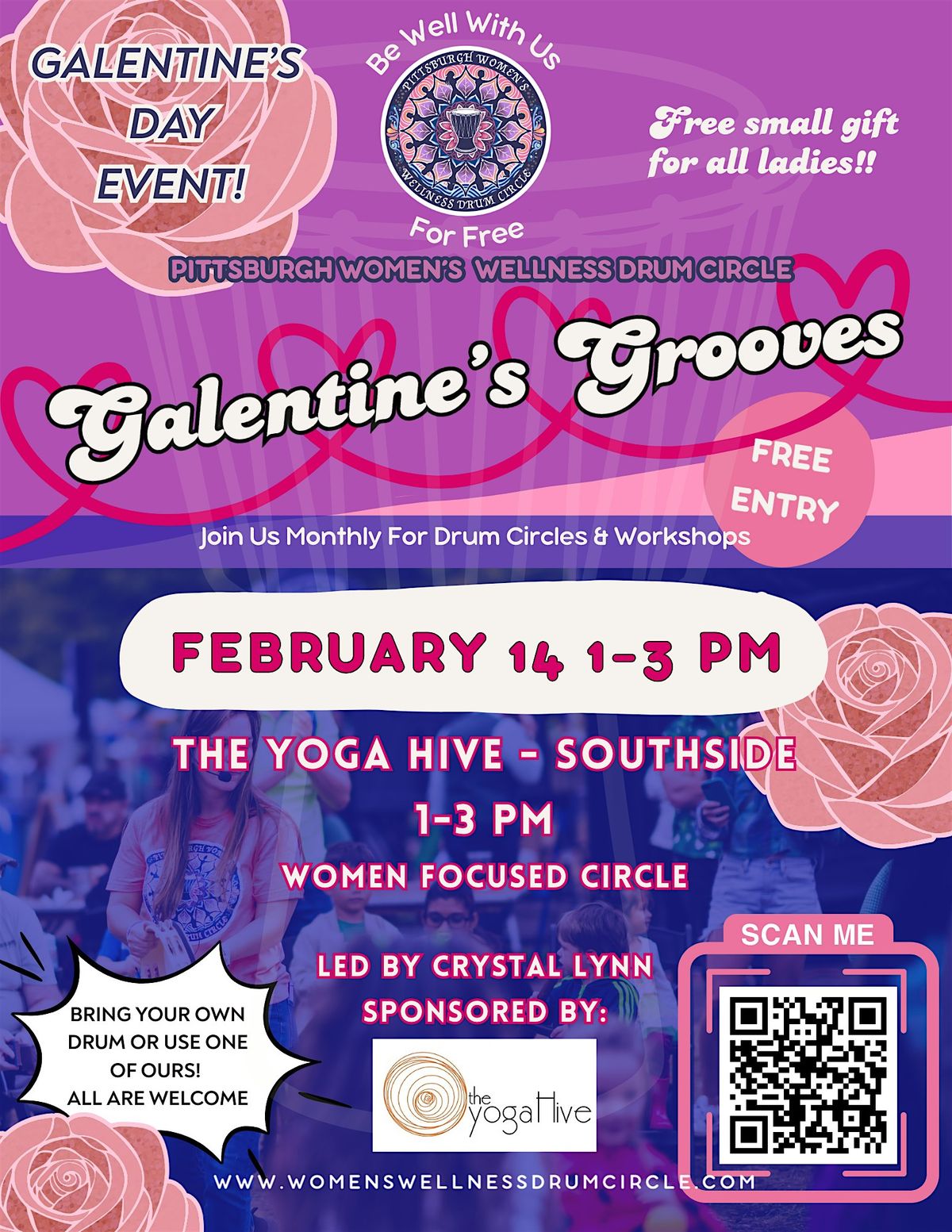 Come connect, drum, and celebrate your divine rhythm this Galentine’s Day.