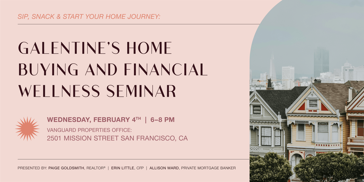 Welcome to the Galentine's Home Buyer and Financial Wellness Seminar! Join us at Vanguard Properties on February 4, 2026 at 6:00 PM (Pacific Time) for an evening of learning and empowerment. Whether you're a first-time home buyer or looking to improve your financial health by buying in the near future, this event is perfect for you. Our expert speakers including a Realtor, Certified Financial Planner and Mortgage Lender will share valuable insights and tips to help you make informed decisions. Don't miss this opportunity to take control of your future. See you there!