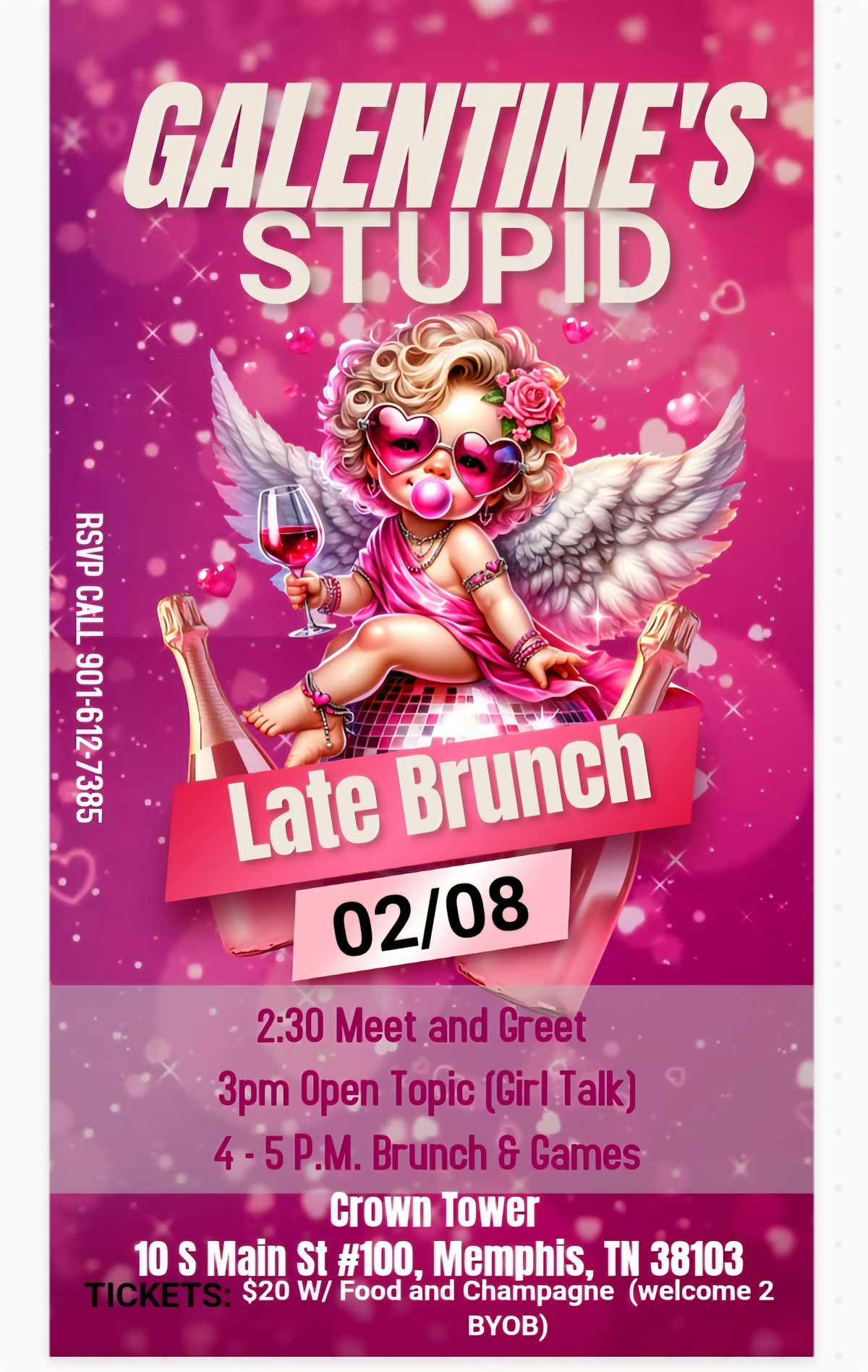 Are you & your homegirls still looking for play date? Have you wanted to host your own Galentine's? Well, call your girls up and come on out. Enjoy our late Brunch 2pm to 6pm. We have signature drinks, Mocktails, games, and topic discussions. Be sure to bring some funds for shopping. Brunch at a boutique...... SWEET....!!!! GUEST ARE WELCOME TO BYOB...... $20 EARLY BIRD until 2/21 ....INCLUDES BRUNCH AND A GLASS OF CHAMPAGNE.