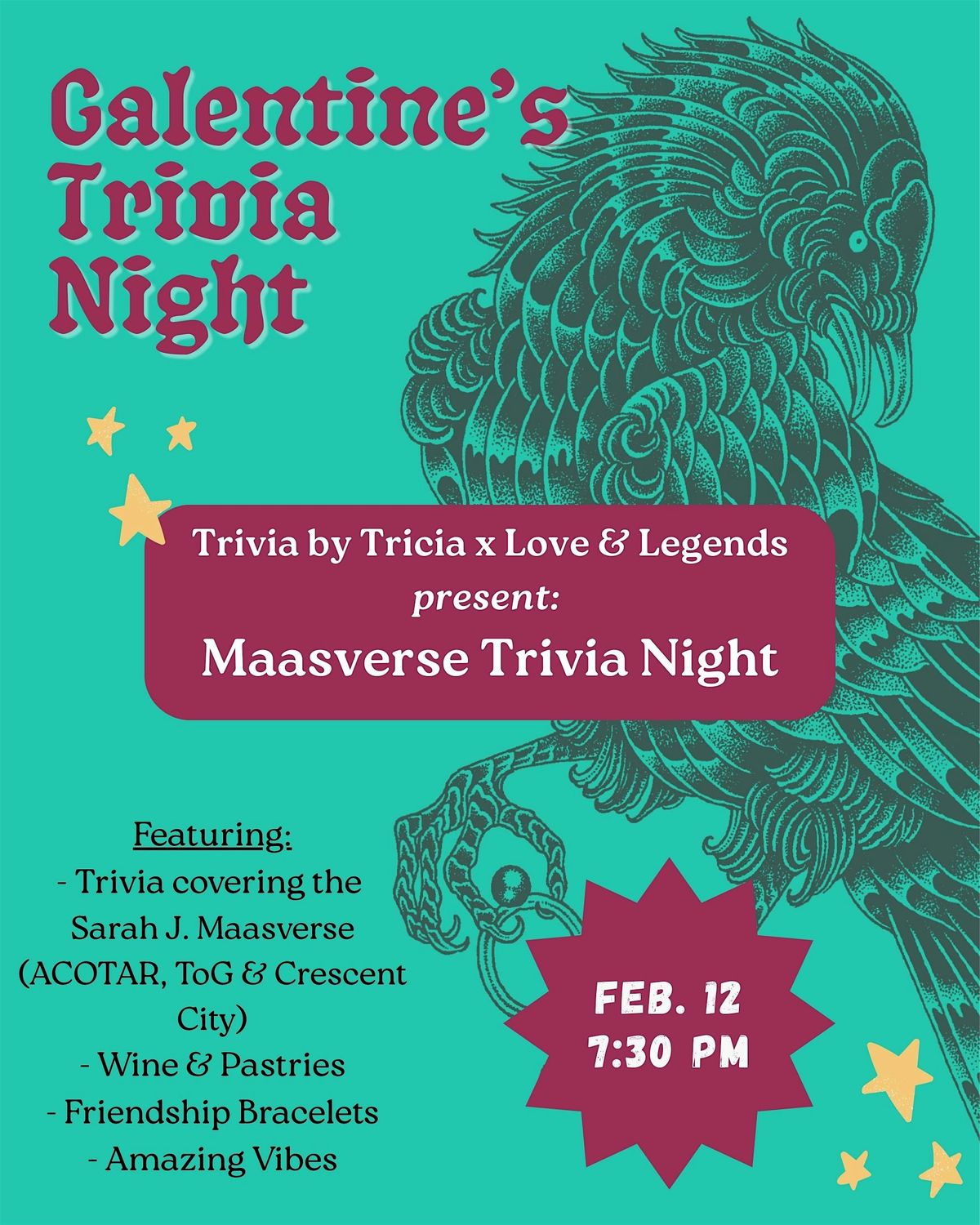 Join us for a Galentine's celebration as we play trivia on the Sarah J Maasverse (ACOTAR, ToG & Crescent City), led by Trivia by Tricia.