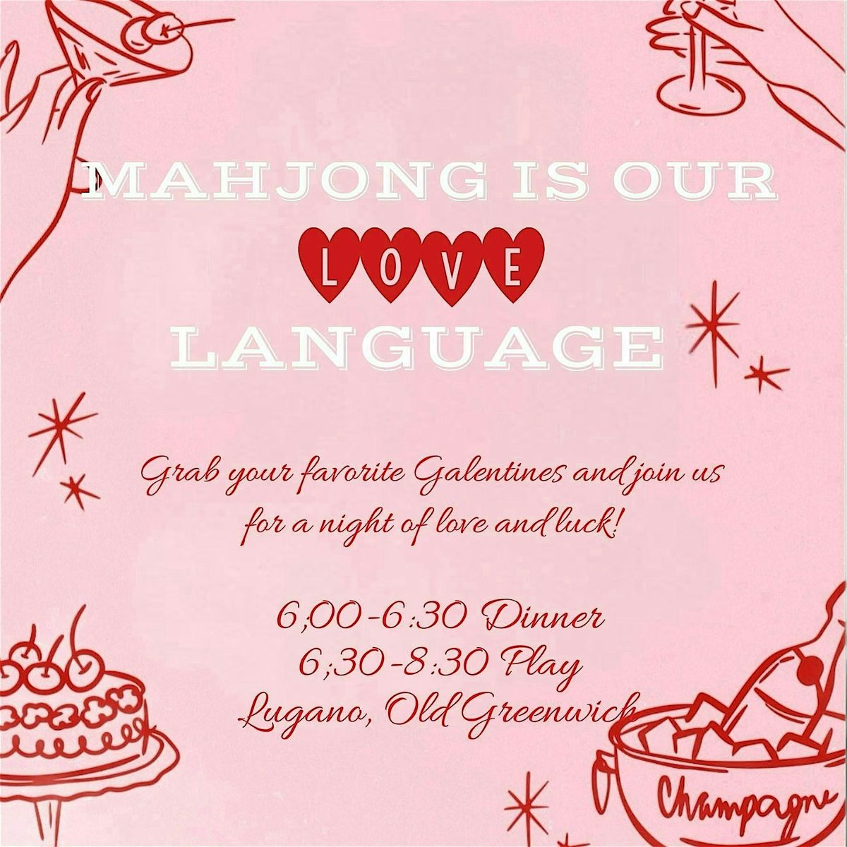 Mahjong is our LOVE language! Grab your favorite galentines and join us for a night of love and luck!
