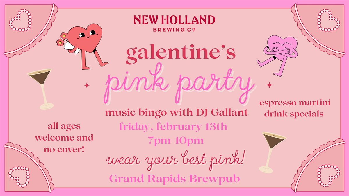 Grab your besties, clear your calendar, and get ready for the ultimate Galentine’s night out! 💕 Our Galentine’s Pink Party is taking over the Grand Rapids Brewpub with high energy Music Bingo hosted by DJ Gallant, espresso martini specials, and nonstop bestie energy. 👯♀️