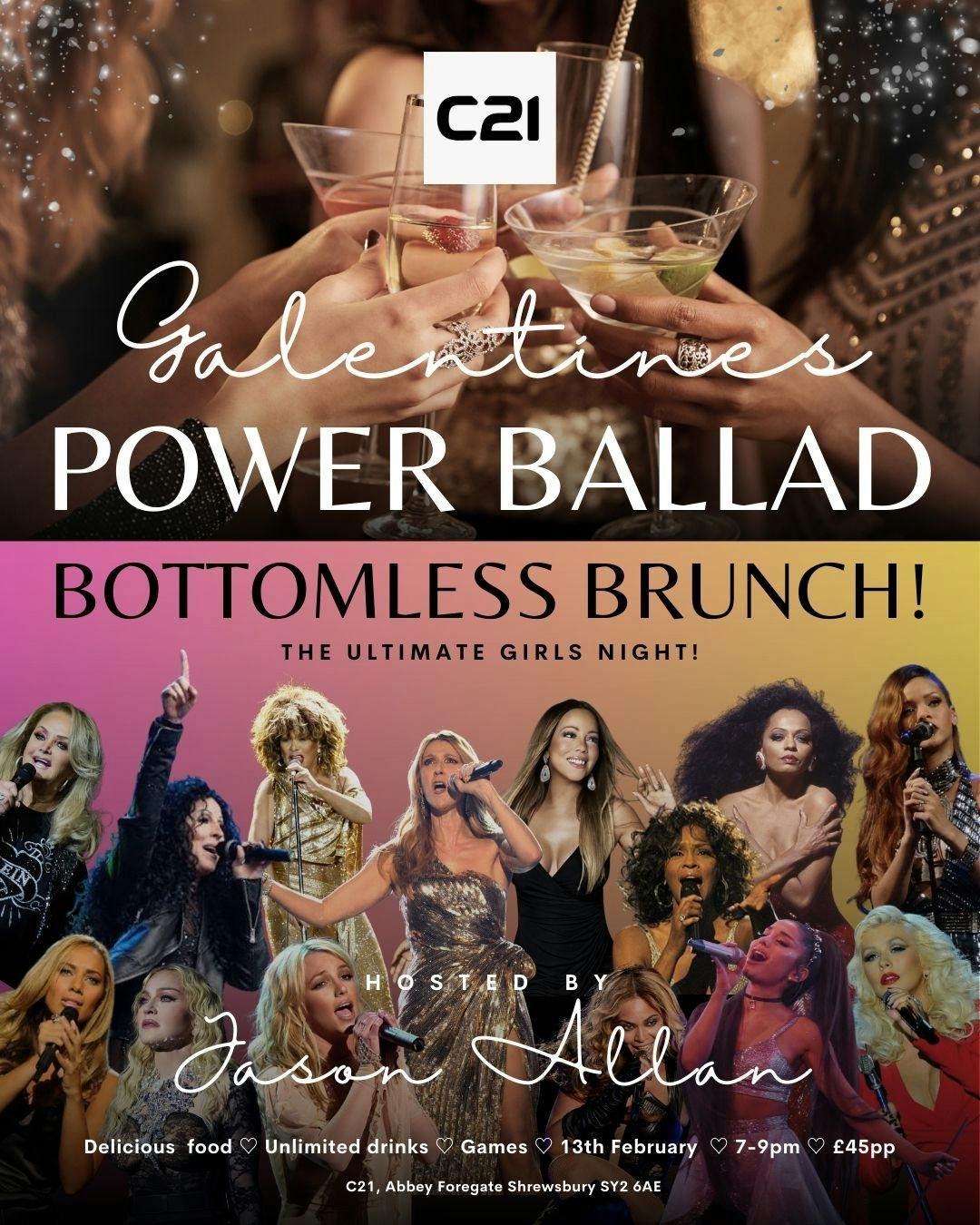 💕🥂 The ultimate girls night is here! 🥂💕GALENTINES POWER BALLAD BOTTOMLESS BRUNCH AT C21