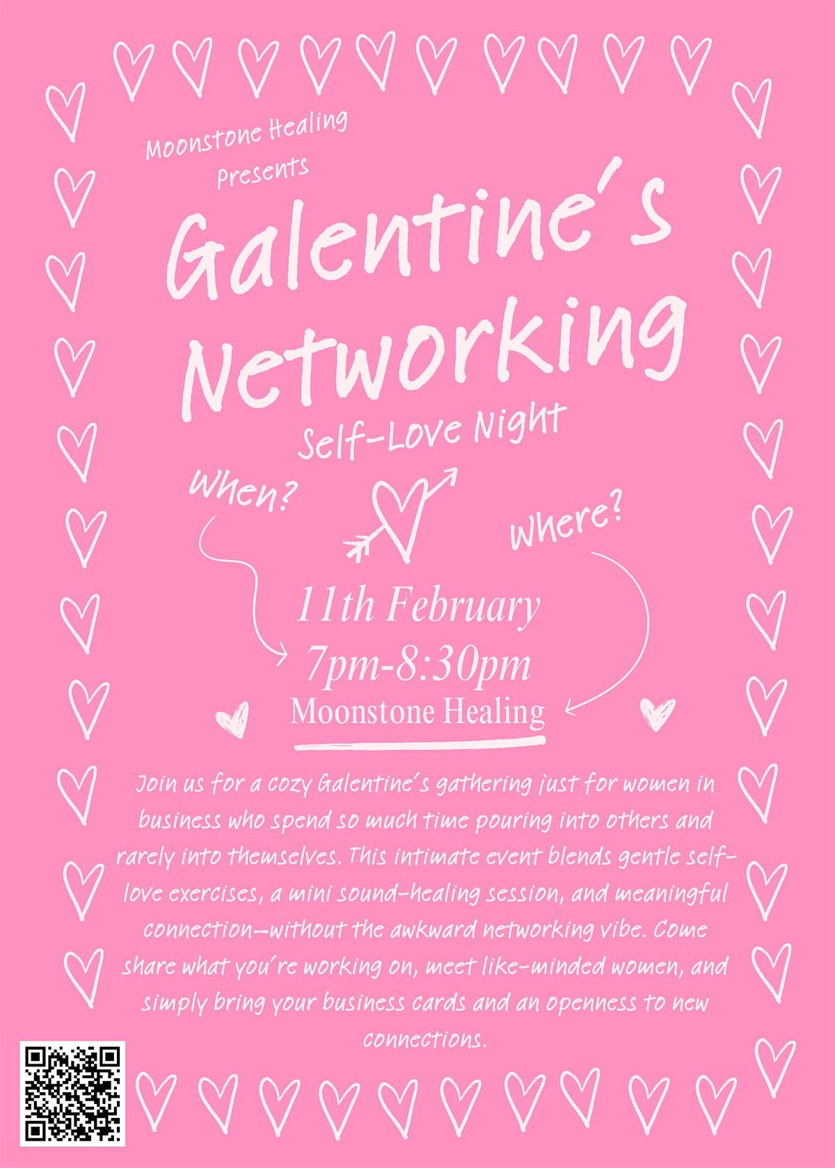 Join us for a Galentine's event designed exclusively for women in business who spend so much time pouring into others and rarely into themselves! This cozy, small-group gathering blends healing, connection, and intentional self-love practices to help you slow down, reconnect with yourself, and surround yourself with a supportive community of like-minded women.
