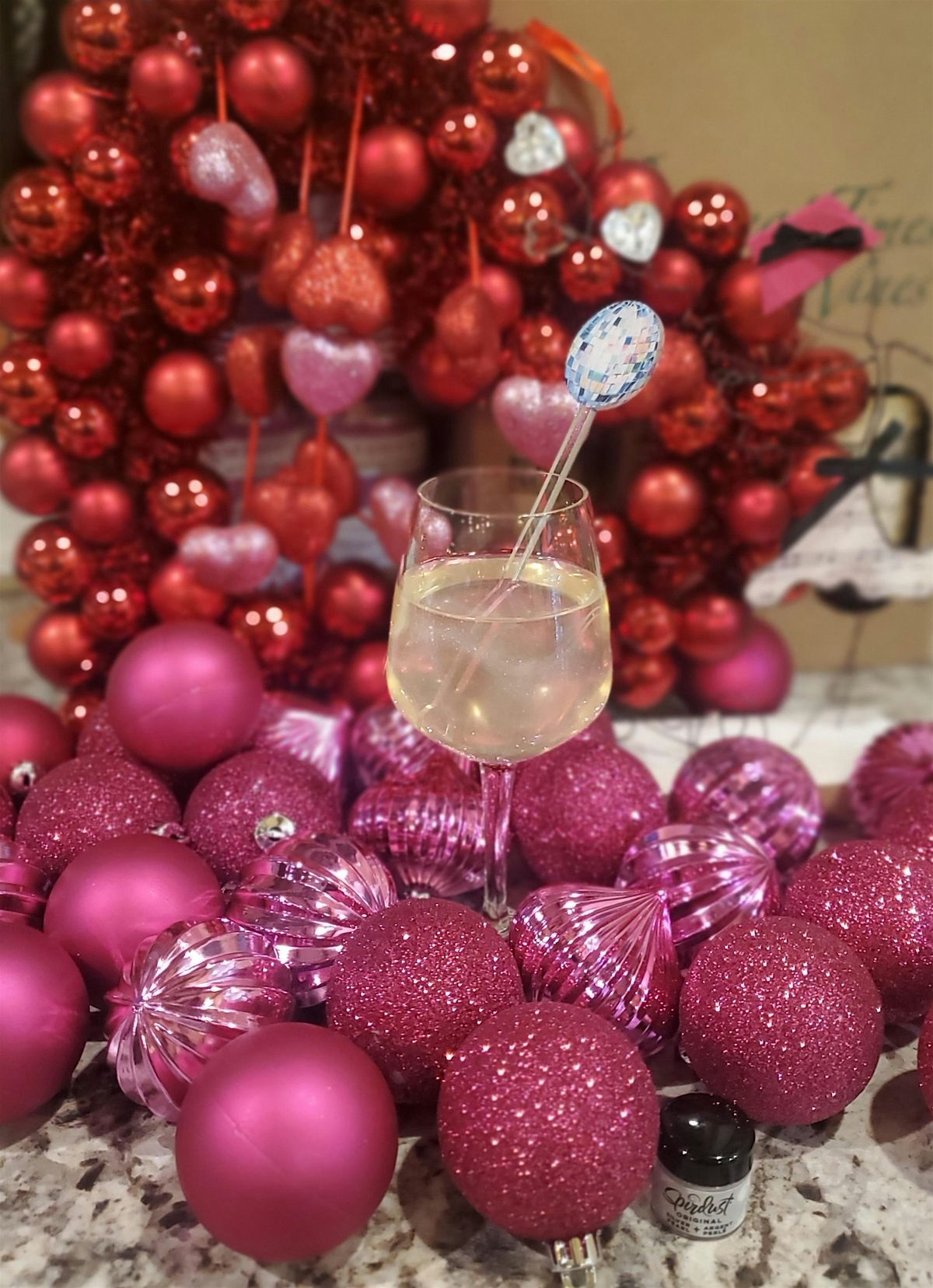 When you arrive and enter the cozy Galentine-ready Vineyard View, you’ll choose your first glass of one of our signature wines, your Keepsake Stir Stick, and your own Shaker of Edible Glitter. Throughout the night, we'll guide you through "The Three Stirs"—intentional moments to swirl luster dust into your glass, creating a shimmering glow while you "stir up" the stories and shared history that keep your inner circle bright.
