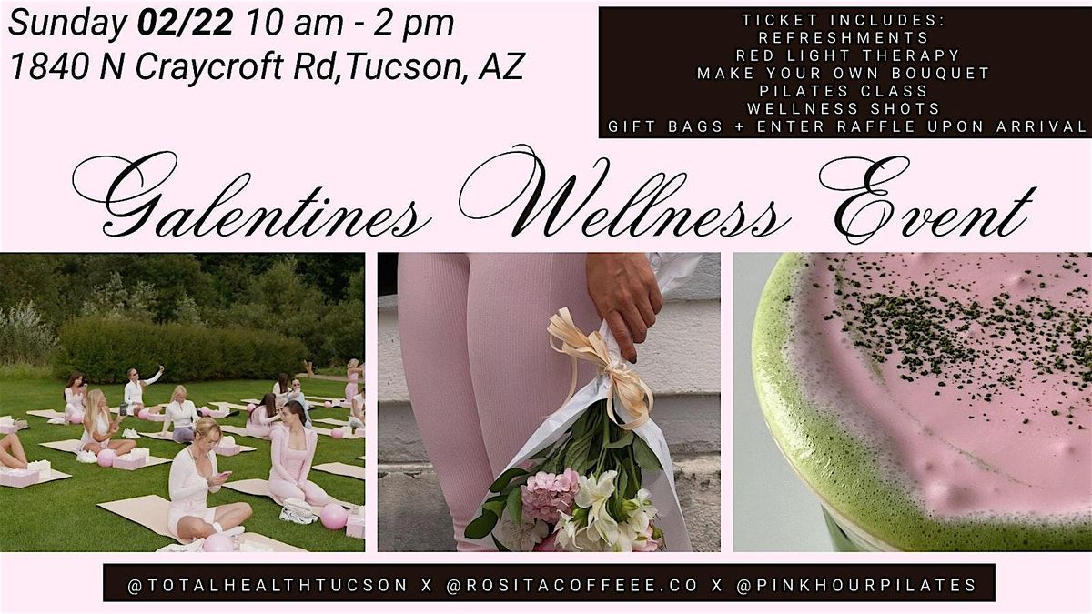 Galentine’s wellness event with Pilates, red light therapy, bouquet-making, refreshments, gift bags, and raffle prizes.