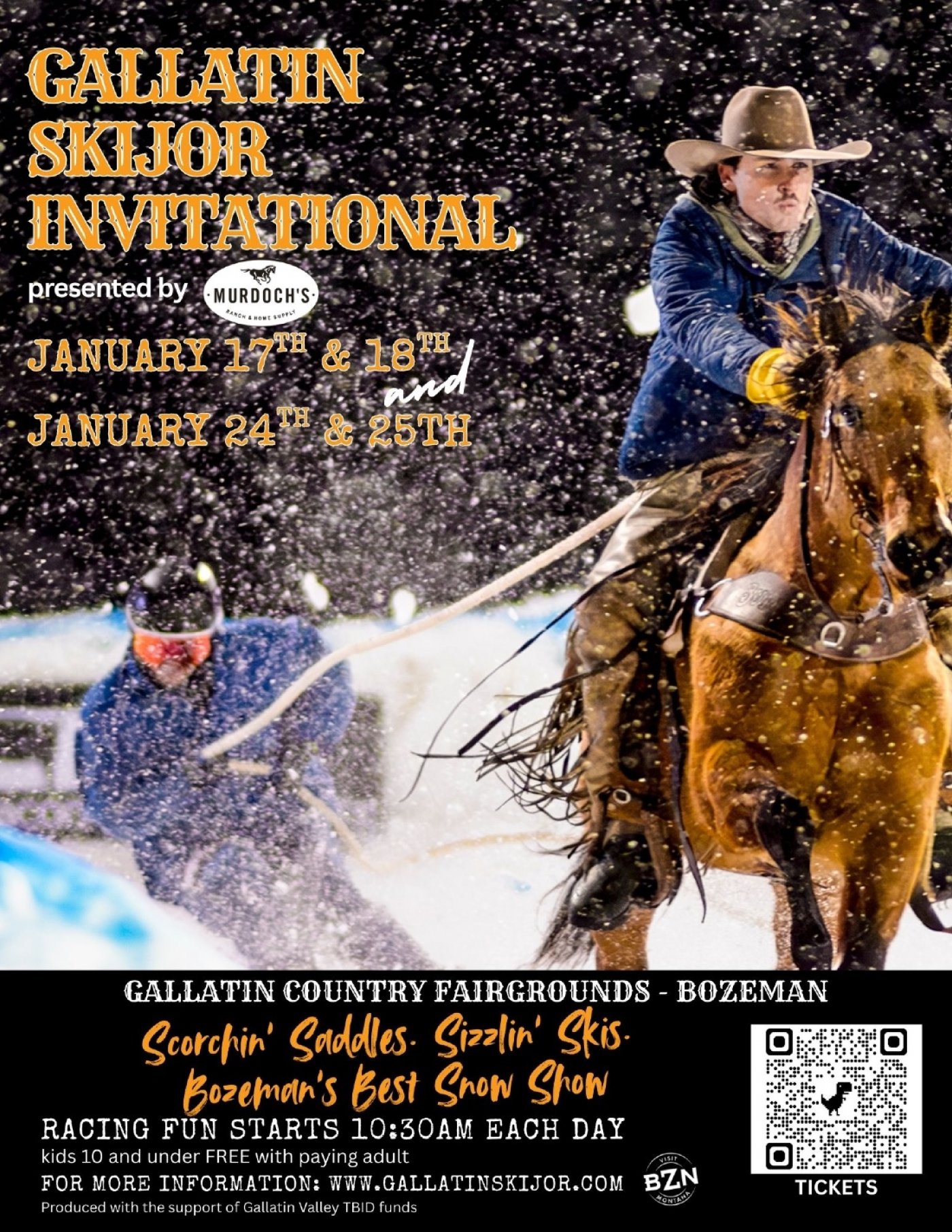 Where wranglers run the reins, skiers grip and rip, and fans yell “Skihaw!” The Gallatin Skijor Invitational is Bozeman’s Best Snow Show, packed with horsepower, ski power, and Montana attitude. Event takes place over two weekends, January 17th & 18th and January 24th & 25th.