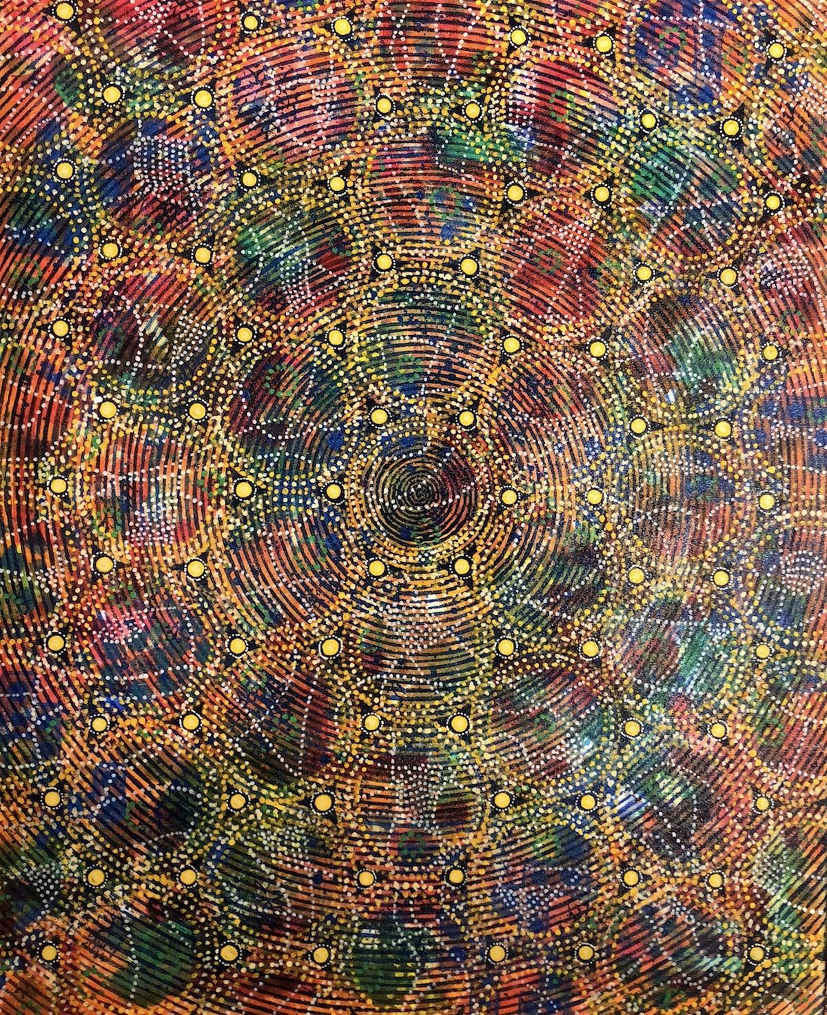 Chandrasekar grew up in an Indian atomic energy research community shaped by both advanced science and ancient cultural traditions. Her work draws on kolam, a South Indian practice of geometric rice-flour patterns made on thresholds, embodying impermanence, resilience, and cosmic order. Her process echoes kolam’s evolution: structured grids and symmetries gradually shift, fracture, or dissolve, revealing hidden layers and new possibilities. These transformations resonate with principles in physics and cosmology, where symmetry and its breaking shape reality from the quantum to the cosmic scale.