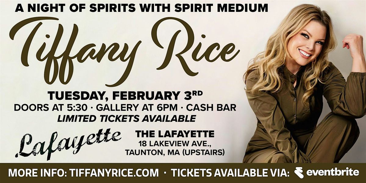 Welcome to the Gallery Reading with Spirit Medium Tiffany Rice at The Lafayette Club upstairs. Join us on Tuesday, February 3rd at 6:00 PM (Eastern Time) for an incredible experience connecting with the spirit world. Tiffany will deliver messages from loved ones who have passed on, bringing comfort to attendees. Don't miss this unique opportunity to witness the power of mediumship in action. Come with an open heart and mind, and prepare to be amazed!