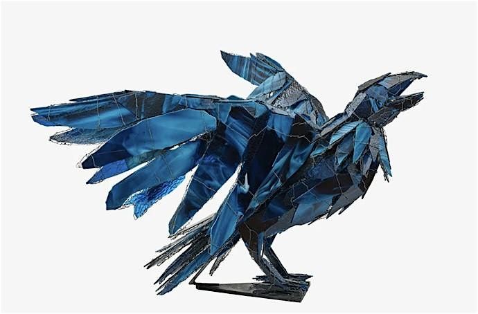 Image: Joan Danziger, Ocean Sky Raven, 2022. Metal and glass, 25 x 41 x 29 inches.