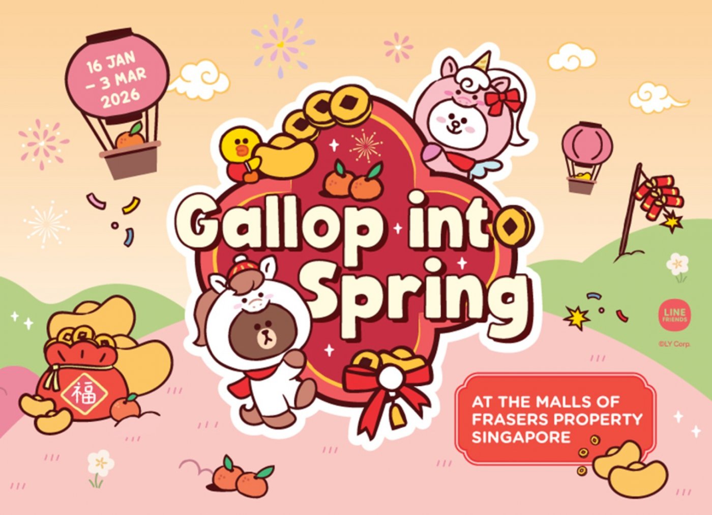 Celebrate the Year of the Horse at the malls of Frasers Property Singapore, where festive décor, rewards and cultural performances come together for the Lunar New Year. From 16 January to 3 March 2026, shoppers can Gallop into Spring with vibrant Lunar New Year-themed LINE FRIENDS installations and festive rewards across participating malls.