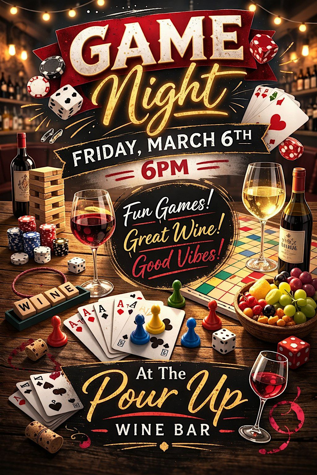 Join us Friday at 6PM for a fun-filled Game Night where great wine meets friendly competition. We’ll have board games, card games, and interactive fun all night long — perfect for date night, girls night, or bringing your whole crew.
