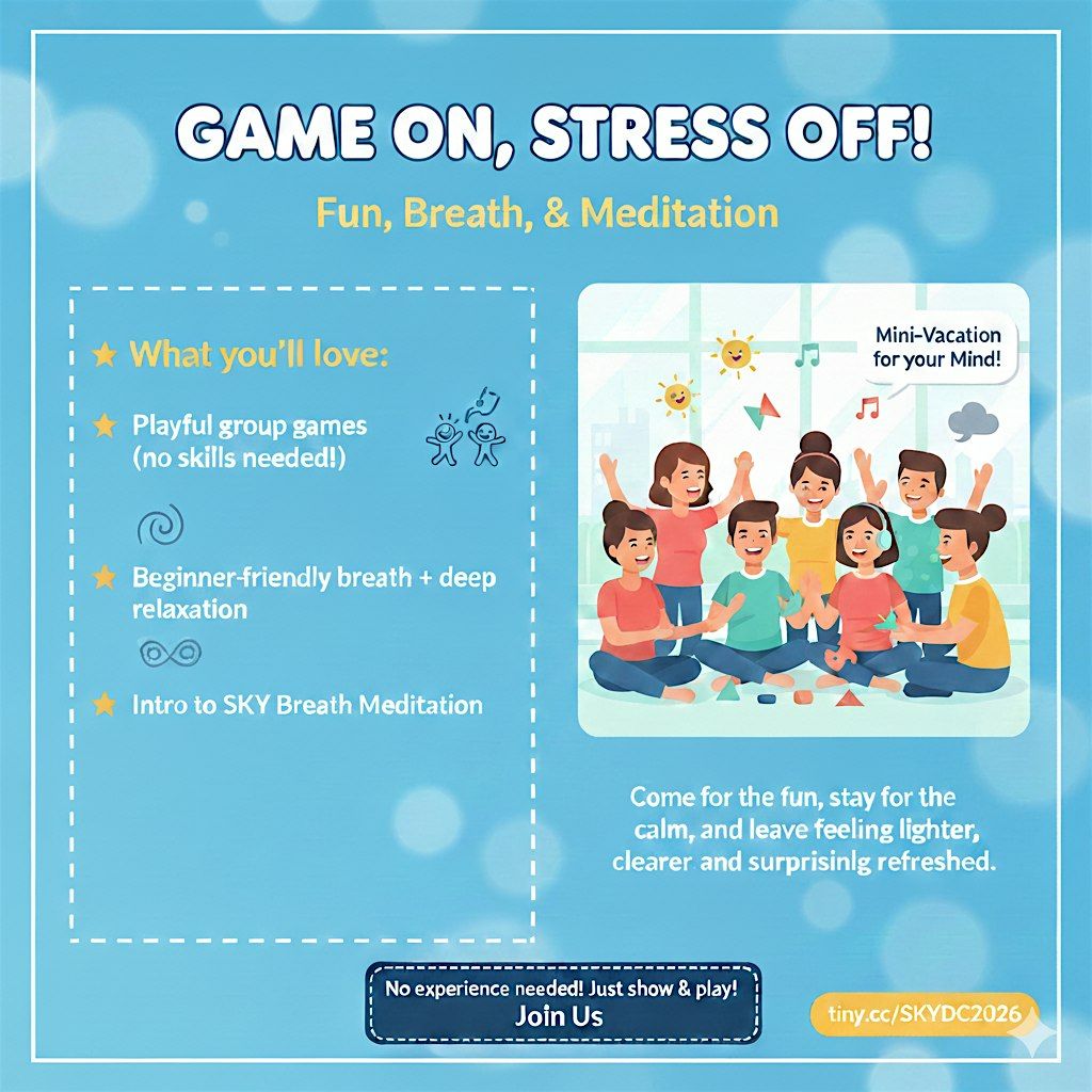 Game On, Stress Off: Fun, Breath, and Meditation is a light-hearted, feel-good session designed to help you unwind without taking yourself too seriously.