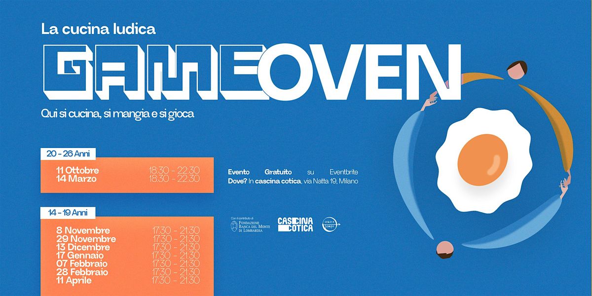 GAME OVEN è un percorso gratuito dedicato a ragazze e ragazzi che vogliono vivere un’esperienza unica di socialità : cucinare insieme, condividere il pasto e concludere la serata con una super selezioni di giochi.