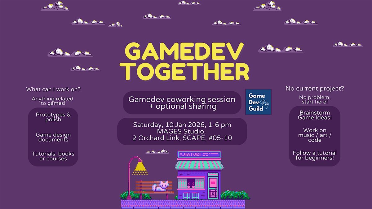 A quiet co-working session for anyone interested in making games.It’s a focused space to make progress on your game alongside others, regardless of discipline, coding, art, writing, music, or design.