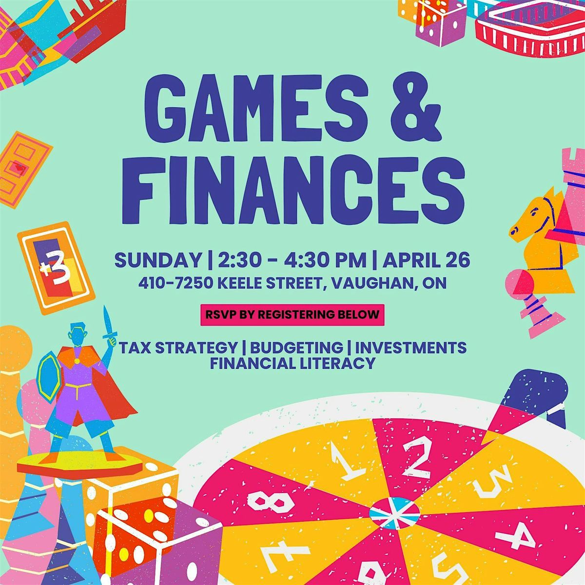 Join us for a fun evening of games & financial tips! We will learn concepts around budgeting, investing, tax strategy while building community.