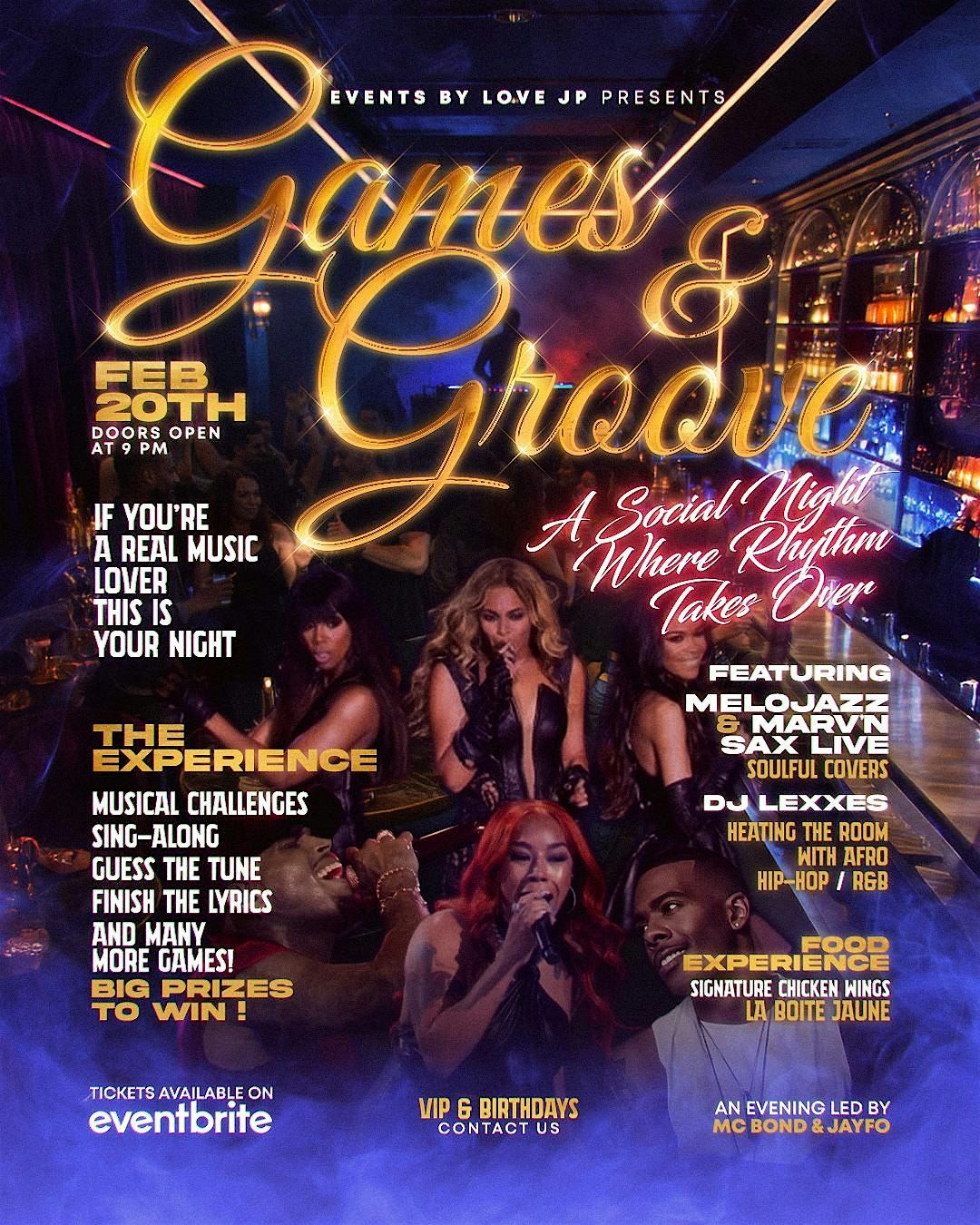 Led by MC Bond and JayFo, this refined social night invites you to sing, dance, play, and connect through music and energy.