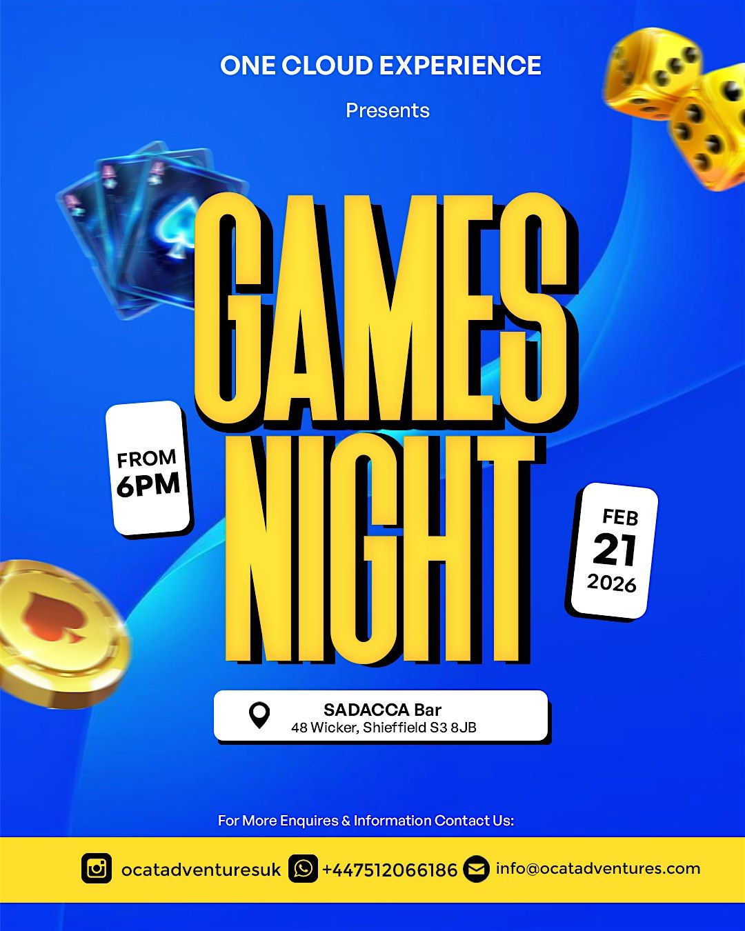 Join One Cloud Experience for a fun and relaxed Games Night at SADACCA Bar, Sheffield.Expect good vibes, great company, and friendly games