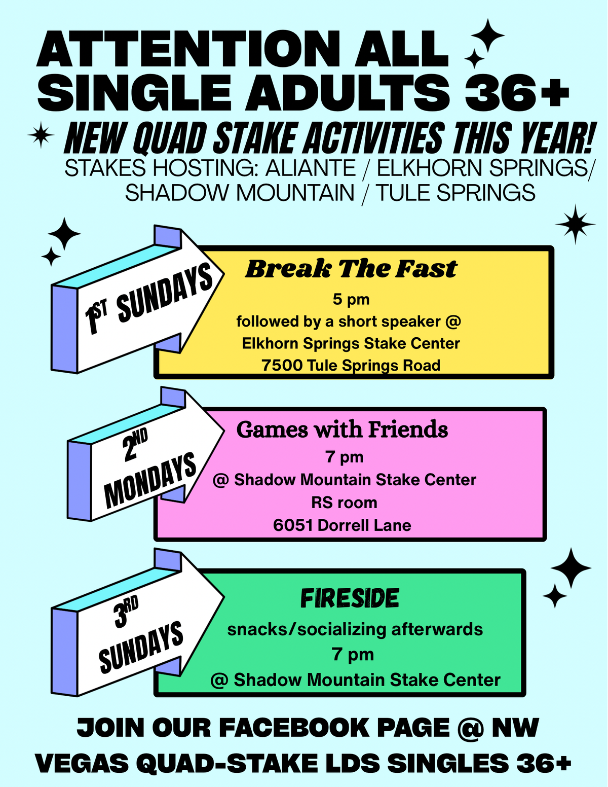 For Single Adults 36+, Come play games at 7 p.m. in the Relief Society room at 6051 Dorrell Ln.