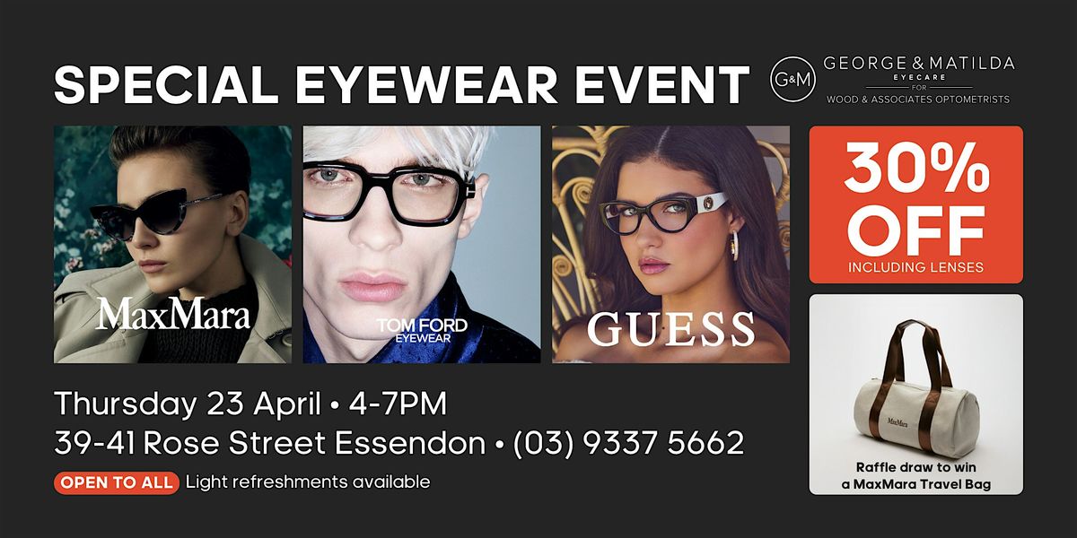 We will have the full Tom Ford, Max Mara, and Guess eyewear range available for you to browse, with our brand style experts on hand.