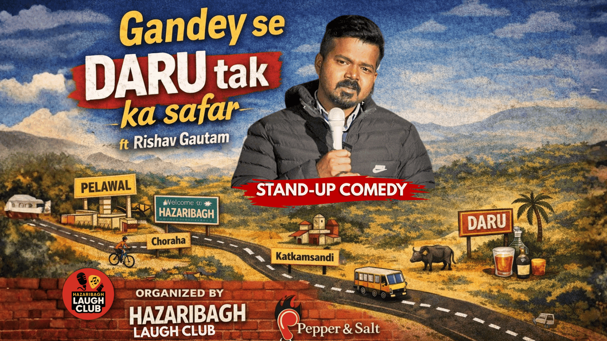 Get ready for a laughter-filled ride with Rishav Gautam, a sharp and relatable stand-up comedian straight from Ranchi, as he brings his hit solo “Gandey Se Daru Tak Ka Safar” to the stage.Rishav’s comedy is rooted in everyday experiences, small-town stories, and brutally honest observations that hit home instantly. From innocent beginnings to grown-up realities, his humor takes you through a journey that’s nostalgic, hilarious, and unapologetically real.Having performed alongside some of India’s top comedians, including Samay Raina, and sharing stages across multiple comedy platforms, Rishav has built a reputation for his effortless crowd connect and punchlines that linger long after the show ends.Whether you’re a die-hard comedy fan or just looking for a fun evening out, this show promises non-stop laughs, relatable stories, and classic desi humor.Come laugh, unwind, and enjoy a stand-up comedy experience you’ll definitely relate to!
