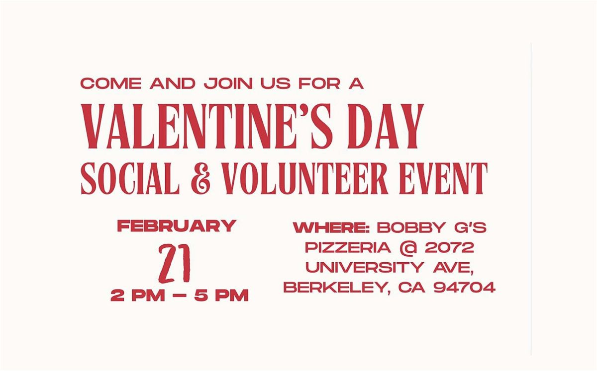 Join us at Bobby G’s Pizzeria (2072 University Ave, Berkeley, CA 94704) on Saturday, February 21st from 2–5 PM as we create Valentine’s Day–themed care kits for UCSF Benioff Children’s Hospitals! 🍕❤️
