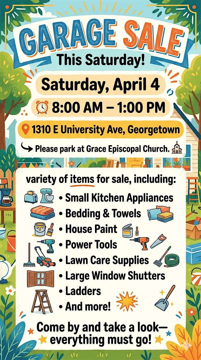 Please park at Grace Episcopal Church. Score some awesome deals and hidden treasures at this casual neighborhood garage sale!