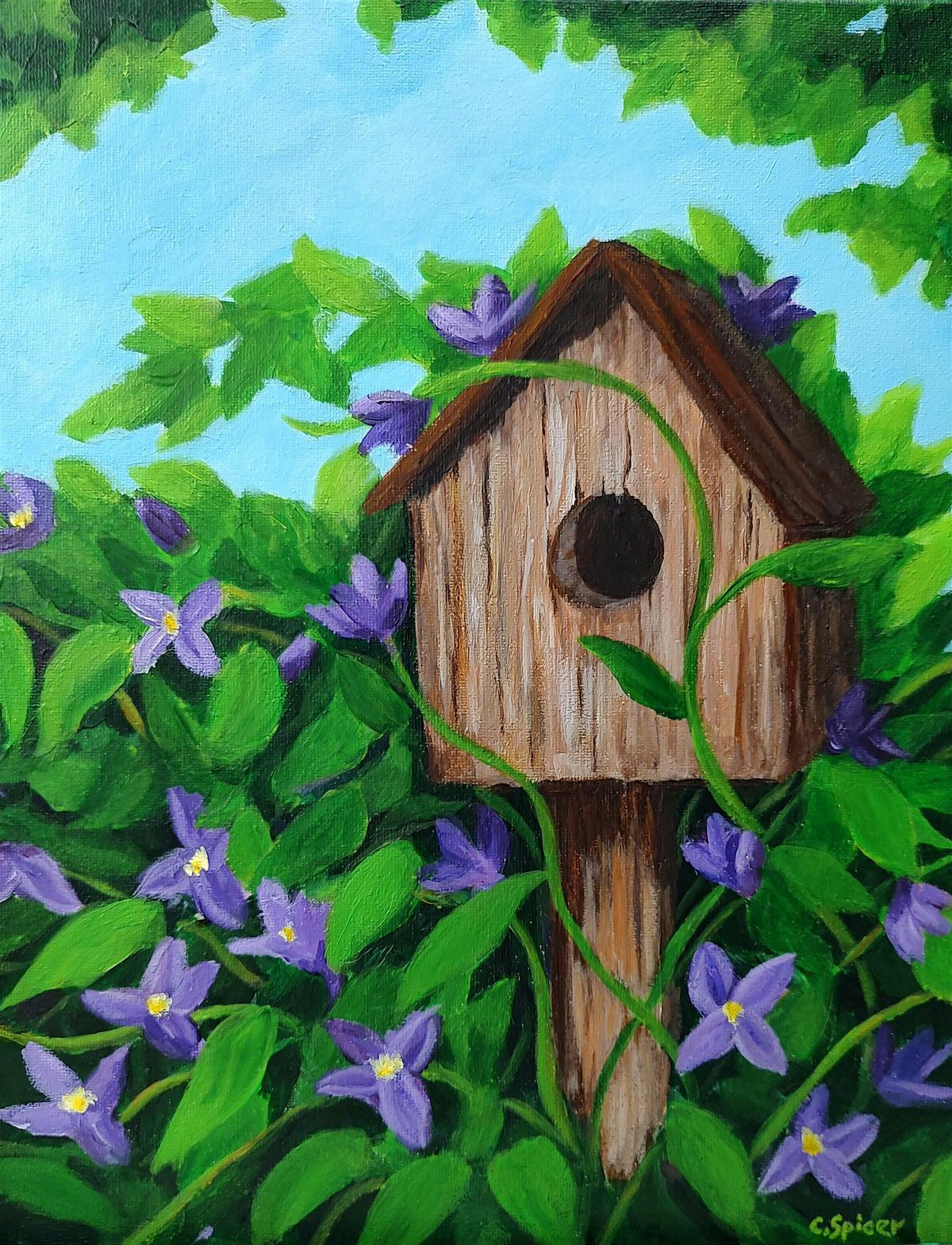 Enjoy a creative afternoon making your own acrylic painting of a birdhouse in a garden. You will be guided by local artist, Charlotte Spicer. No experience necessary. We will be painting on an 11" x14" stretched canvas. Seating is limited. All materials for this project are included in the fee. A slice of either combo or vegetarian pizza and a drink will be provided.