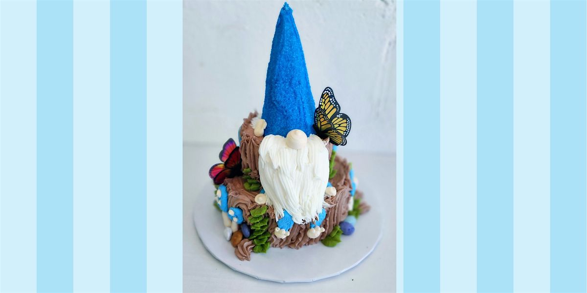 Learn and decorate your own 4x6 mini tiered Garden Gnome themed cake with our buttercream icing! Learn techniques using icing tips and tools! Create one all your own or team up with a friend or family member and share it together! All supplies and instructions provided. Option of white or chocolate cake.