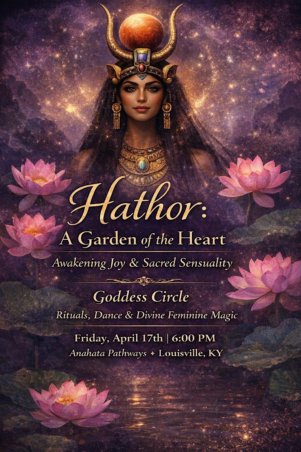 In this Goddess Circle, we will journey with Hathor—the Egyptian goddess of love, beauty, music, and joy—whose presence invites us to open, to feel, and to remember that pleasure and devotion are not separate… but intertwined.