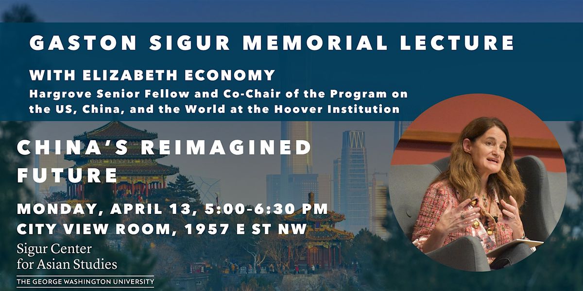 Join the Sigur Center for Asian Studies for our annual Gaston Sigur Memorial Lecture. This year, we will be joined by Hargrove Senior Fellow and former senior advisor for China at the Department of Commerce Elizabeth Economy. How does Xi Jinping conceptualize China's future role on the global stage? What strategy is he pursuing to realize his vision? What are the most important domestic and international determinants of his likely success or failure? Join us as Dr. Economy ponders these questions and more about China's reimagine future.