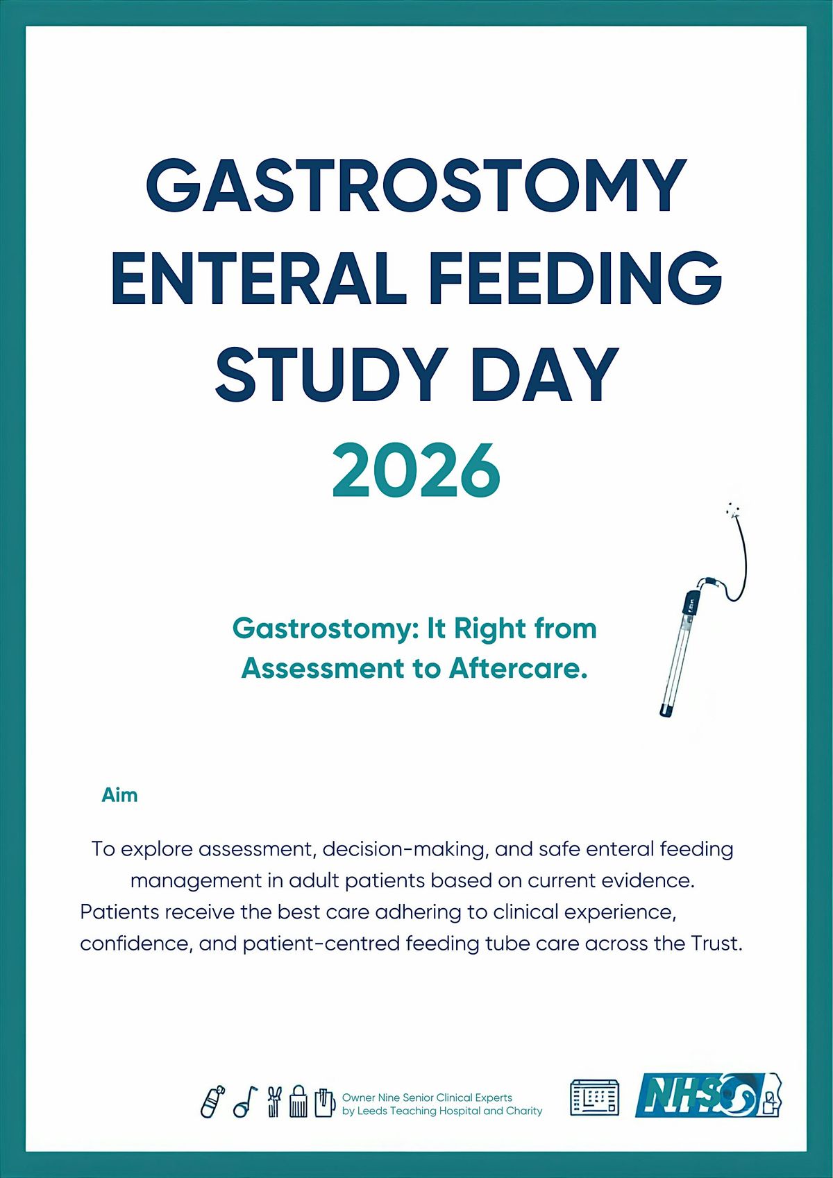 To explore the assessment, decision-making and safe management of gastrostomy and enteral feeding in adult patients, based on current evidence and best practice. Delivered by experienced multidisciplinary professionals, the event aims to enhance clinical knowledge, confidence and patient-centred enteral feeding tube care across the Trust.
