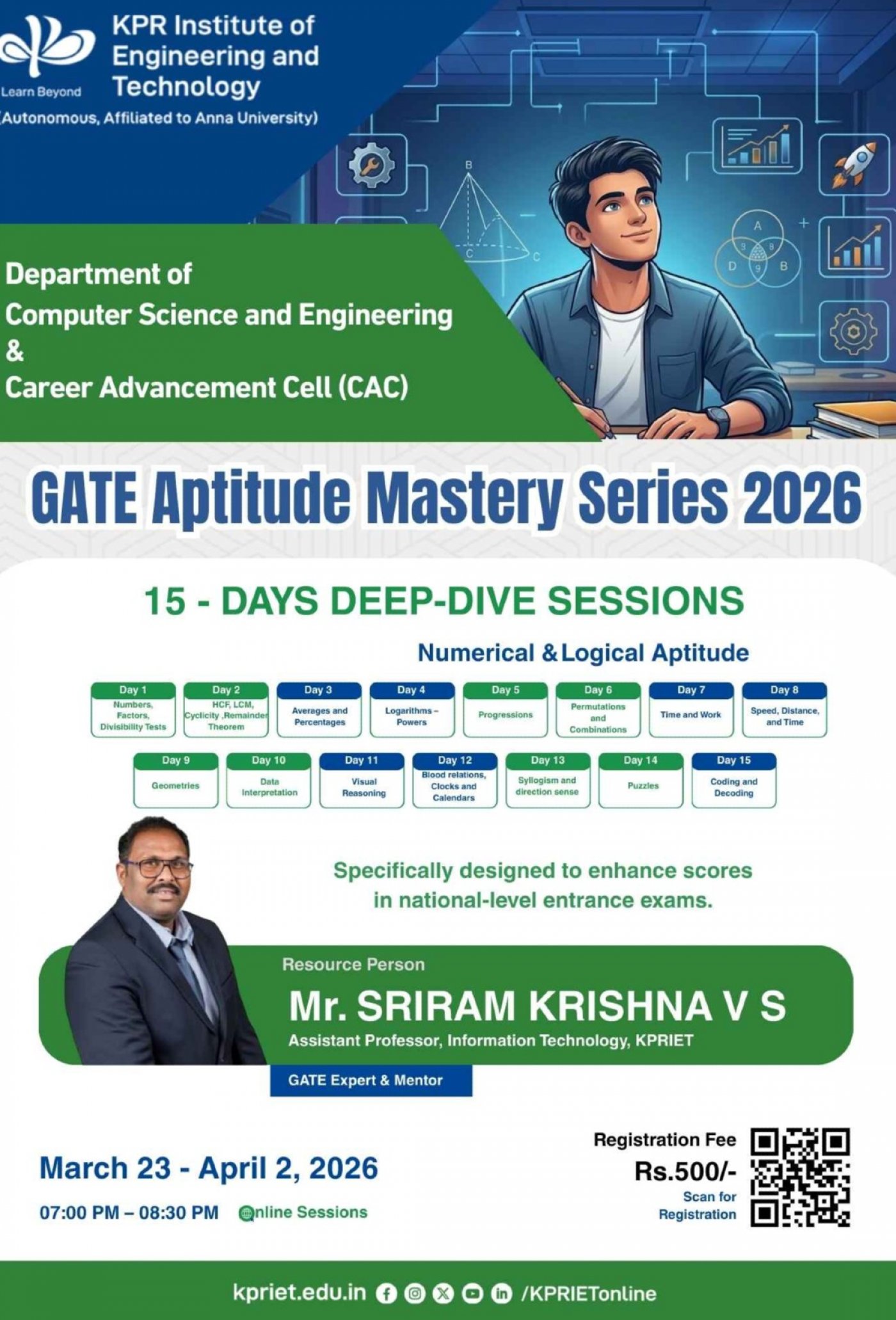 The Department of Computer Science and Engineering, in collaboration with the Career Advancement Cell (CAC), is excited to announce the launch of the GATE Aptitude Mastery Series 2026.