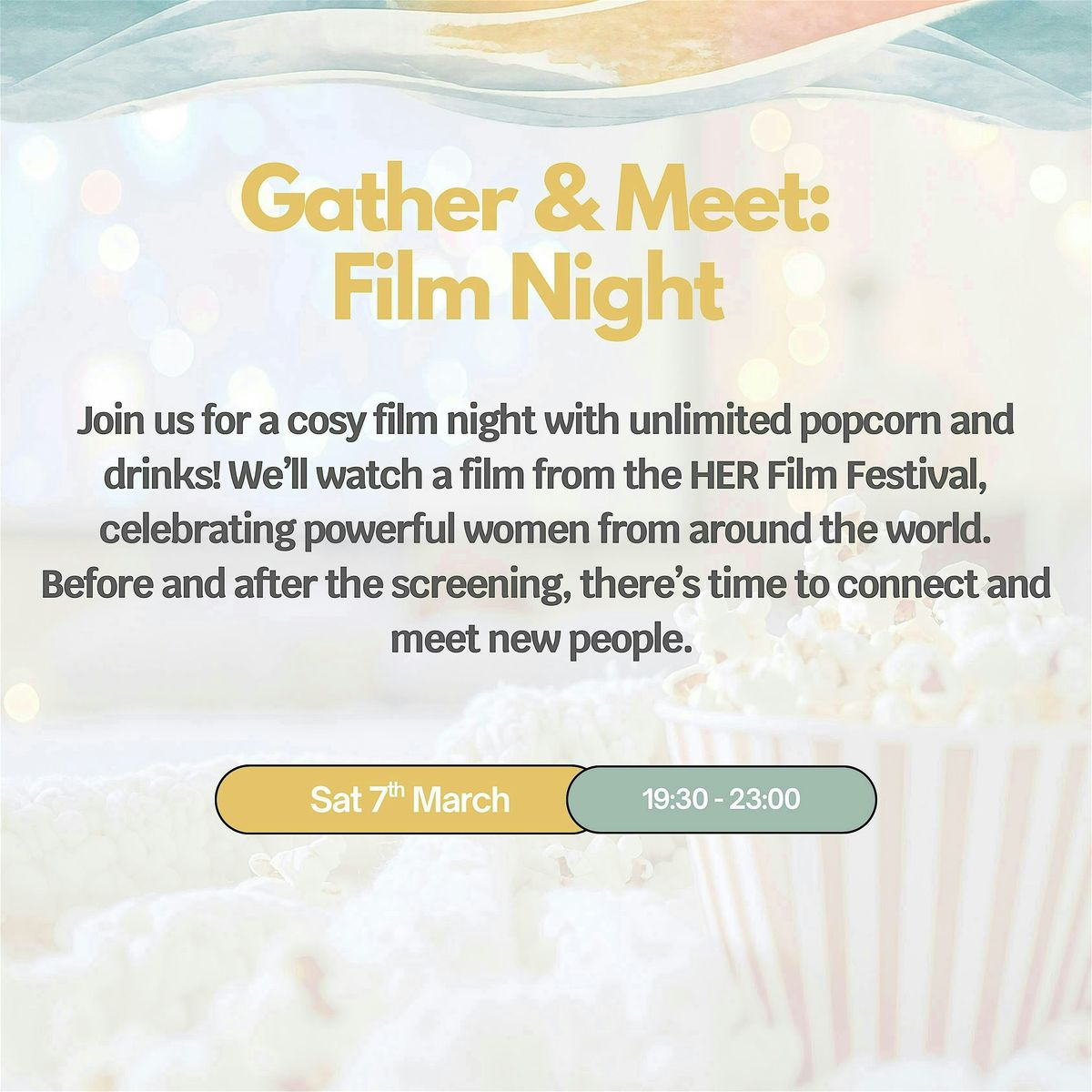 Join us for a cosy film night with unlimited popcorn and drinks, celebrating powerful women worldwide.About this Event